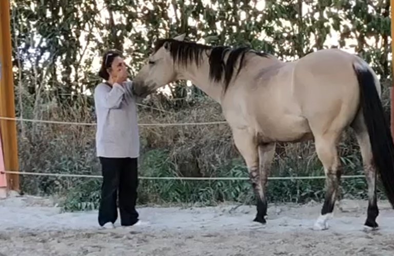 Prevede un primo contatto con il cavallo (che rimarrà presente per tutta la durata del lavoro) attraverso 4 principi base per entrare in ascolto e iniziare la connessione: